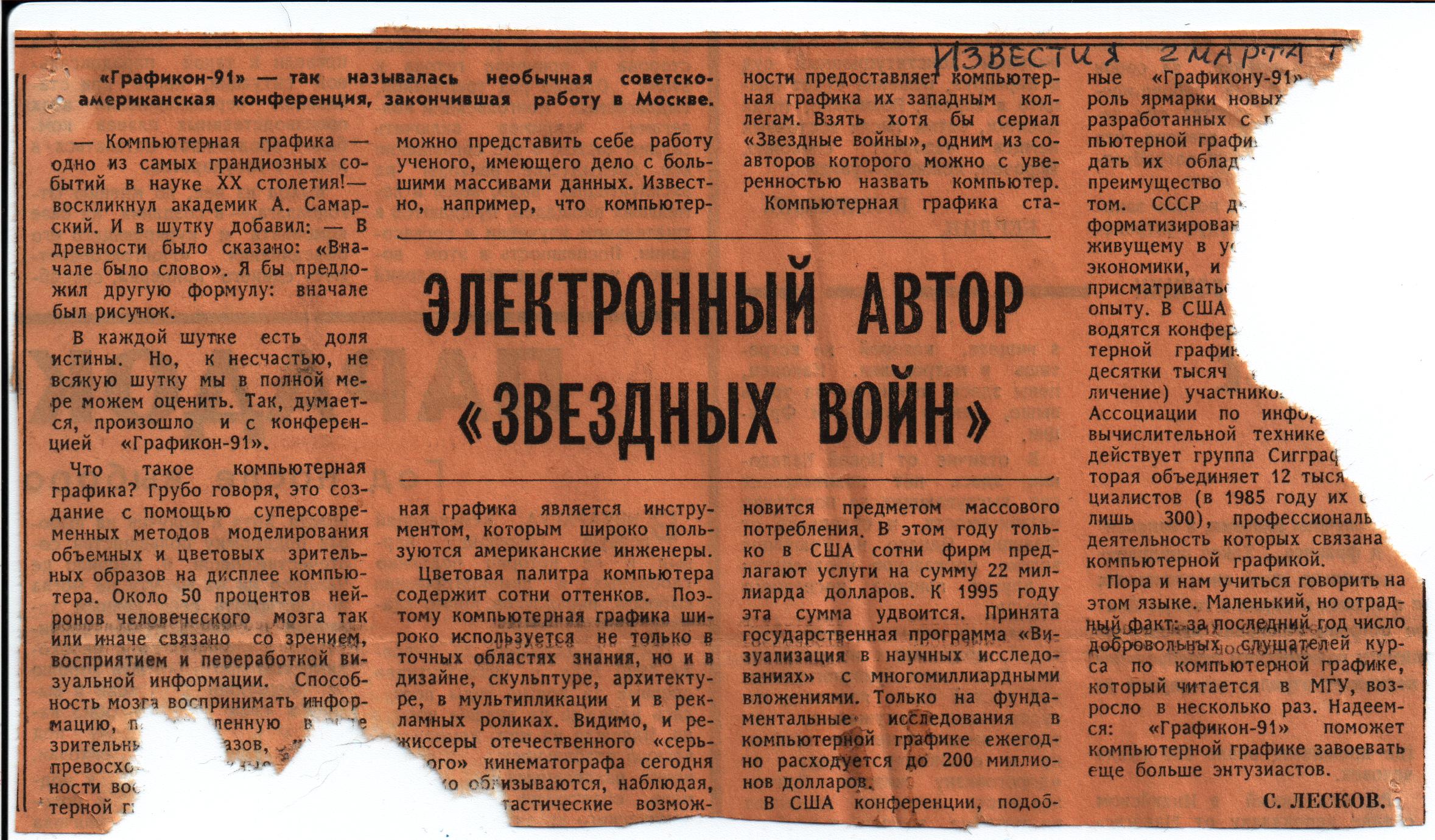 Рис. 6. А это то, что сохранилось от заметки в газете «Известия», написанной тем самым С.Лесковым, который блистал в «Известиях» до самого недавнего времени.