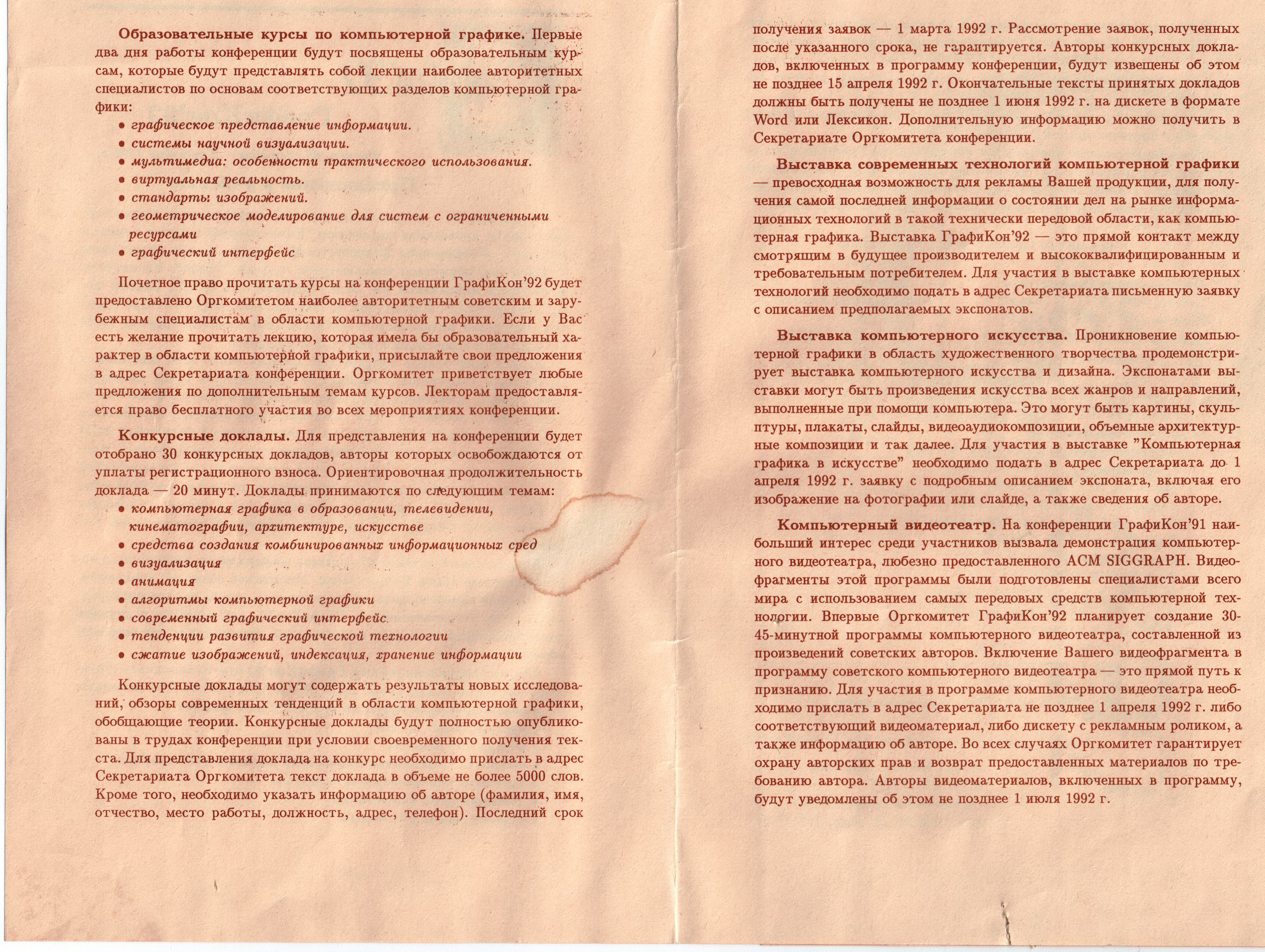 Рис. 11. Приглашение к участию в следующей конференции Графикон – Графикон-92, которая состоялась в сентябре-октябре 1992 г. в Институте молодежи, бывшей Высшей комсомольской школе ЦК ВЛКСМ, в Кусково, Москва.