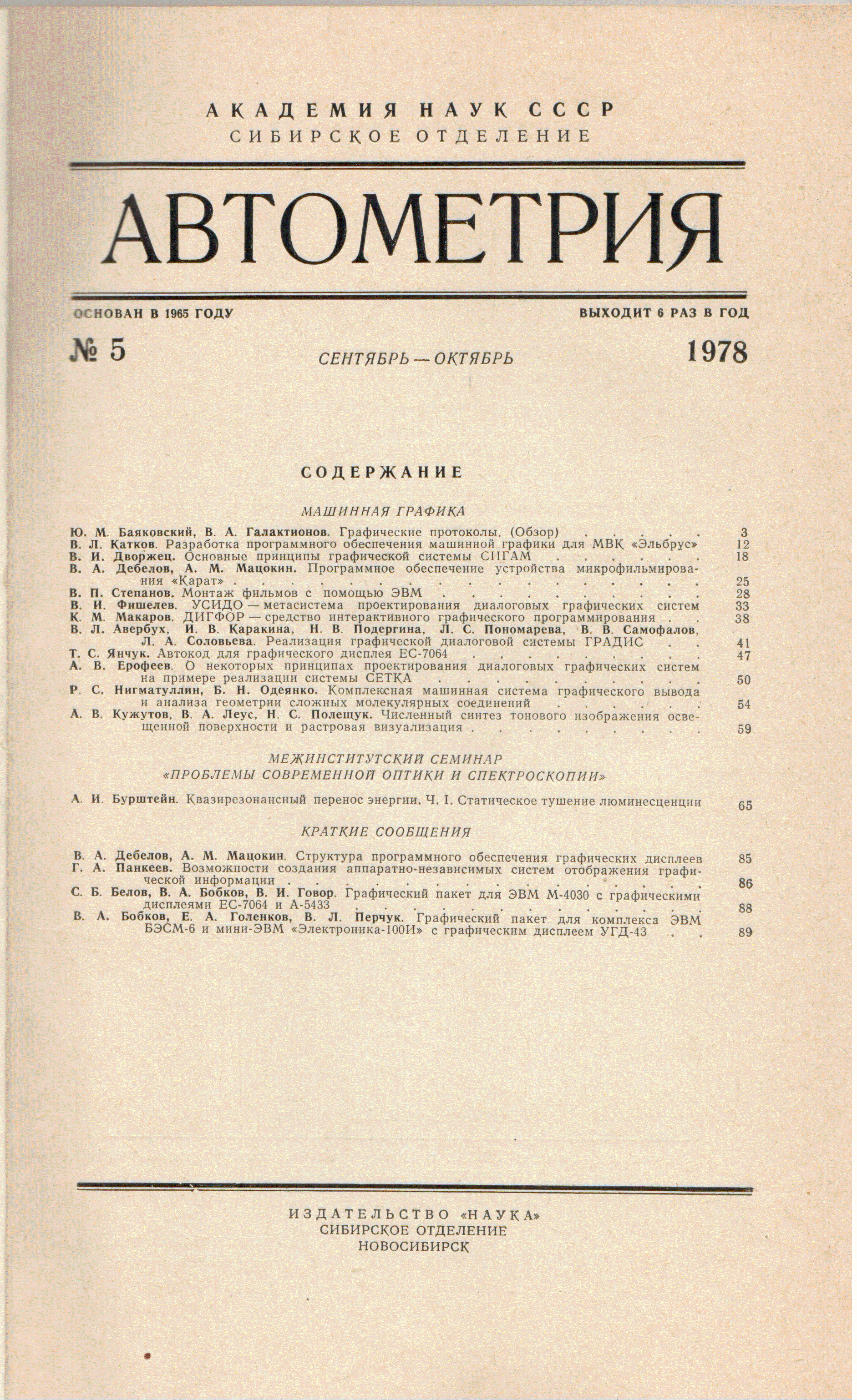 В сентябре 1977 года в Новосибирске состоялась первая встреча графиков. Событие было заявлено как "региональная конференция", но собралось достаточно представительное сообщество, получилась Всесоюзная. Часть докладов была отобрана для публикации в журнале Автометрия, что и произошло в 1978 году.