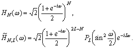 что все эти условия выполнены, и определим биортогональные вейвлеты