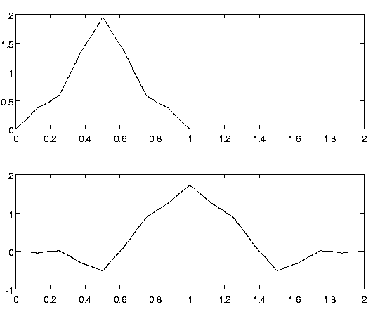 Скейлинг-функции и вейвлеты в их примере были кусочно-самоподобными, и